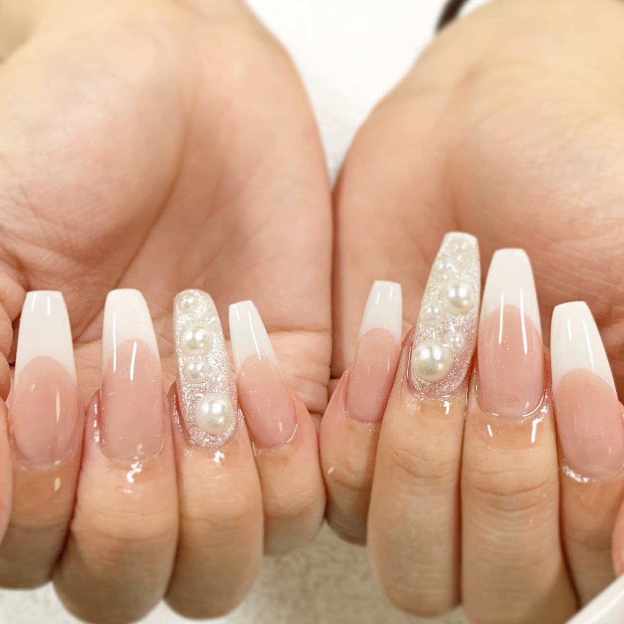 オールシーズン ブライダル ハンド フレンチ ロング Lady Nail Fukuoka Daimyoのネイルデザイン No ネイルブック